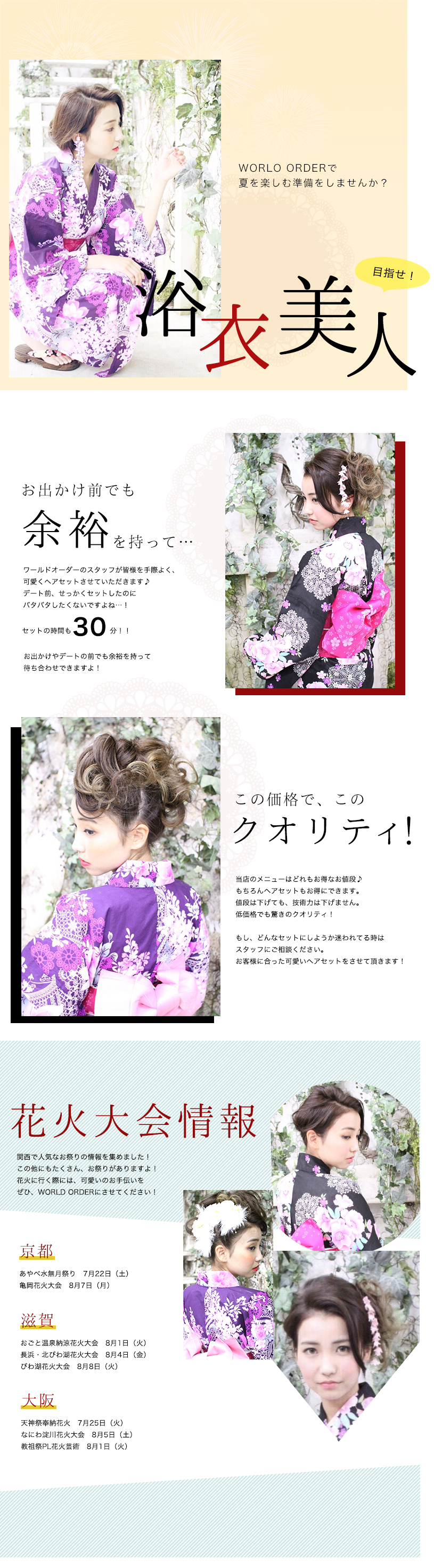 「すべての女性に最高の美を提供したい」「すべてのオーダーにお答えしたい」そんな思いで誕生したのがworldorder。料金は驚きのお値段!!しかも何回ご来店頂いても定額料金!!1度きりではなくずっと通って頂ける高級サロンです。