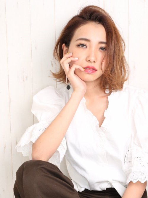 ライトベージュ 斜めバング